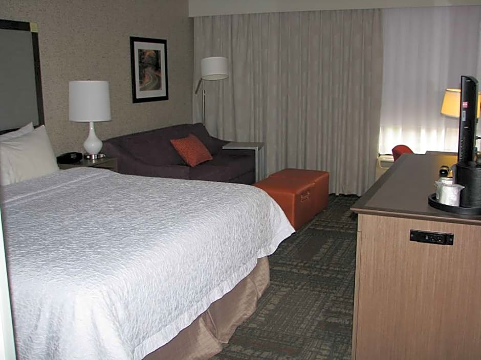 Fireplace, free WiFi, 37-inch TV, coffeemaker, desk, easy chair with ottoman, shower This spacious non-smoking studio suite features our king-sized clean and fresh Hampton bed®, a comfortable easy chair with ottoman, and a 37-inch TV. Catch up on work at the large desk, or surf the web with free WiFi access. Refresh in the bathroom which has a WaterPik showerhead and curved shower rod that allows more light and space in the shower.