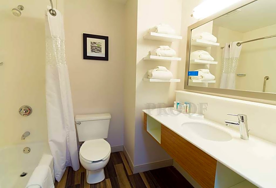 Any corresponding photo may not reflect the specific accessible room type or room feature. This hearing accessible, nonsmoking room features one king sized bed(s). The room also has a visual alarm and notification devices for the doorbell or door knock and incoming phone calls. The room features our luxurious Clean and Fresh Hampton Bed, comfortable soft seating, microwave, refrigerator, a HDTV, and easy to operate alarm clock/radio. In the bath you will enjoy a WaterPik shower head and curved shower rod. The free high speed internet access will help you stay connected while on the road. If you prefer not to work at the desk, you can use the convenient lapdesk instead. You'll also enjoy the convenience of having a coffee maker with tea service and iron/ironing board in your room.